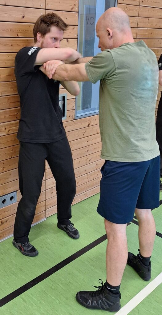 Das Seminar wurde dabei bewusst physisch fordernd gestaltet, um die Belastungen eines echten Würgeangriffs möglichst authentisch nachzustellen. In den 6 Stunden wurden die häufigsten Angriffsszenarien behandelt sowie praxisnahe Techniken vermittelt um sich aus diesen zu befreien. Die Techniken zeichnet aus, dass diese mit kleinen Anpassungen sowohl im Stand als auch am Boden anwendbar sind.